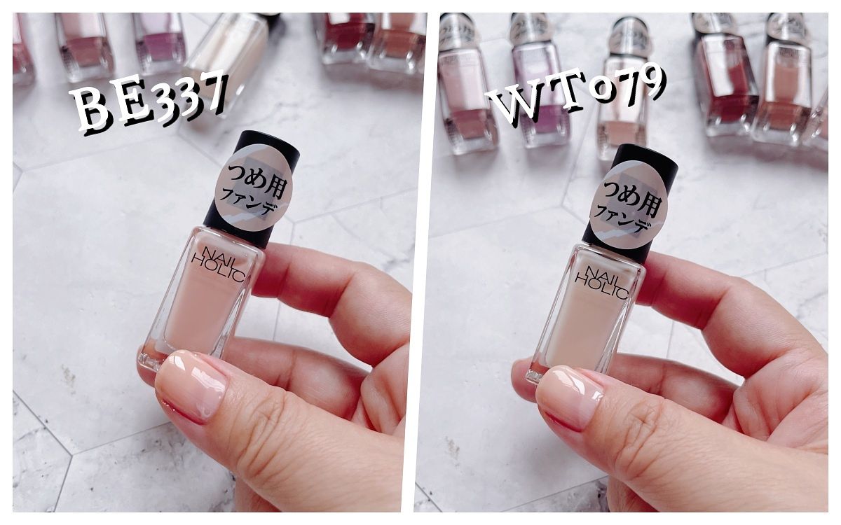 BE337、WT079這2瓶為自然色,介於冷暖色的中間,特別裸,有一種沒擦指甲油的感覺,不想要有妝感,又想讓甲面感覺健康明亮的話,可選這2瓶!