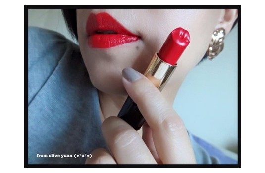 瓶身有Olympia xxx的簽名哦!它有淡淡花香,好滋潤~完全不卡唇紋,唇部平滑柔軟,順手好塗抹,是帶橘的可愛紅色,用了會變年輕喔!可是我捨不能破壞它!一直都用邊邊塗抹哈哈。(如我買不到這款的人,還是買得到#1955啦!)