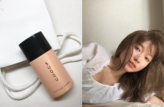 在容易黯沉的眼周部位疊上粉紅飾底乳,並在鼻翼與鼻子周圍、毛孔顯著的區域塗擦毛孔型飾底乳,藉由飾底乳自然的妝效,巧妙地修飾臉部的不同瑕疵。