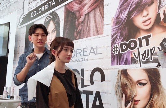 在記者會上,由人氣髮型師大仁先生利用這6款新品新色,很簡單地打造出2種在家也能簡單完成的繽紛粉霧色挑染髮。髮型師強調這罐染髮噴霧,是不需要先將深頭髮脫色後使用,只需直接噴上就能讓顏料緊緊吸附頭髮,原理就像是睫毛膏附著在睫毛上一樣。但還是會有沾染的問題,所以在噴上前一定要先圍上圍巾。