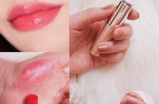 彩妝師特別提醒一個小技巧~像這樣亮色調的唇彩,若塗滿全唇的話會看起來比較成熟,所以宋慧喬的唇妝會是比較淡雅的染唇妝感~先從唇腹內側塗上唇膏,再用唇刷將唇色輕輕向外暈染,搭配清新的亮麗玫瑰色看起來更減齡!