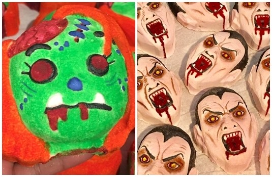 因應萬聖節,品牌也推出各種不同恐怖造型的泡澡球,像是吸血鬼的樣子,或是經典卡通《聖誕夜驚魂》南瓜王傑克,雖然融化進水裡的畫面實在有點嚇人,但裡面的成分都是使用安全的成分,官網指出,連敏感肌膚或是孩童都可以使用,每一款也都是採用手工製作,不是機器大量生產,所以相當費工費時。