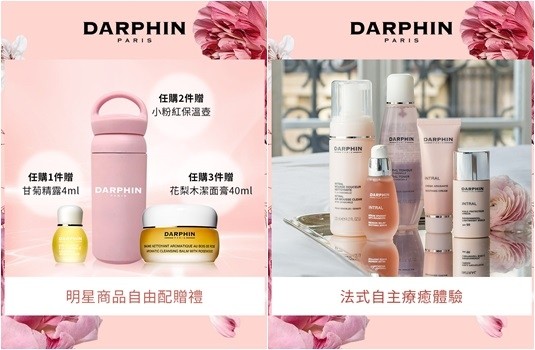 *明星商品品項為現場陳列之指定產品,自由配贈禮恕不累贈,數量有限送完為止,DARPHIN保留活動修改之權利