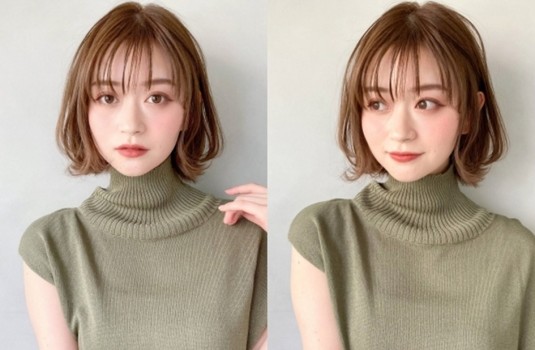 一樣以外層內彎、內層外捲的方式整理,就會非常好看了!照常度搭配高領毛衣也很適合,建議搭配透明感瀏海可以一併修飾臉型,像這樣有點結合日系+港風的髮型,非常有女人味!