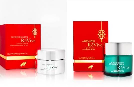 為迎接2021金牛年的到來,RéVive首度推出 ”光采奢華紅” 限量包裝!特別將經典熱賣明星商品、新春拜年好氣色必擦、豪華容量75ml #發光霸主『光采再生活膚霜』,及急救過年熬夜必備、撫紋超有感、用過回不去的 #眼紋小熨斗『賦活晚安眼膜』,換上新春限定版喜氣牛年 ”光采奢華紅” 限量包裝!質感絲絨紅色包裝設計,點綴耀眼金黃色燈籠、元氣金牛圖騰,傳遞吉祥福氣、喜慶開運;更同時全面為肌膚助陣開光,驅黑去黃、柔嫩亮白再現!2021年RéVive陪您一同牛轉奇肌,煥發嬌嫩新肌、給肌膚如煙火般的閃耀光采!