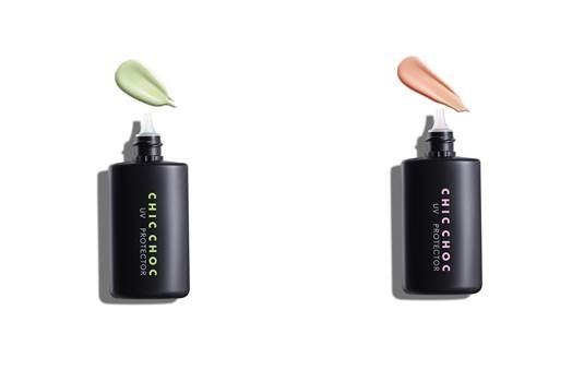 CHIC CHOC全新底妝單品:柔焦UV校色乳 可瞬間修飾毛孔與膚色,提升肌膚賦予粉嫩的美麗肌質。珊瑚粉:可增加肌膚紅潤血色感;湖水綠:可提升肌膚澄靜透明感。全新二色。