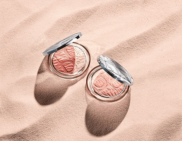 盛裝於銀色弧形粉盒中的《迪奧輕透光礦物蜜粉餅 曠野之丘限量版》,彩盤上同樣刻劃著沙流飄動與熾熱暖陽交織出的栩栩光影線條,完美呈現精緻質感。其蘊含的礦物蜜粉能幫肌膚捕捉自然光線,折射出細緻流金光采,輕鬆打亮、修容,創造立體輪廓。本季推出兩款限量色選,不論是輕盈柔嫩的玫瑰粉色「#001 沙漠玫瑰」,或是如落日餘暉灑落的金燦珊瑚色「#002 暖陽之丘」,都能完美融入底妝透出流動光澤。除了於臉上映出迷人光暈之外,更可以定妝,也能輕點唇峰使雙唇更加嘟俏性感。