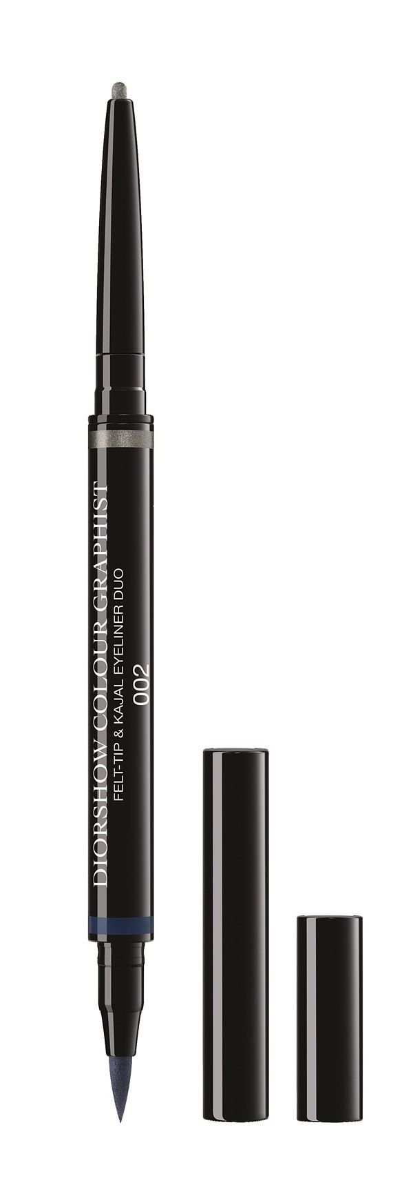 全新《迪奧搶眼兩用眼線筆 曠野之丘限量版》以眼線筆搭配極細眼線液的雙頭設計,為雙眸打造深邃明亮的絕美眼神。一筆擁有極細刷頭、長效防水配方、舒適柔軟質地,輕鬆勾勒就能創造俐落眼妝。其中蘊含高顯色珠光配方的淺色筆頭,非常適合用於描繪內眼線,加強開眼頭效果。本季推出兩款限量色選:「#001 流金時刻」可使用極致霧黑色端勾勒眼線,再搭配閃耀金色端打亮臥蠶,創造清新眼神;「#002 沙漠之夜」則可使用午夜藍色端隨心描繪眼神線條,再搭配閃耀銀色端點亮雙眸,打造魅力有神的 3D 大膽眼妝。