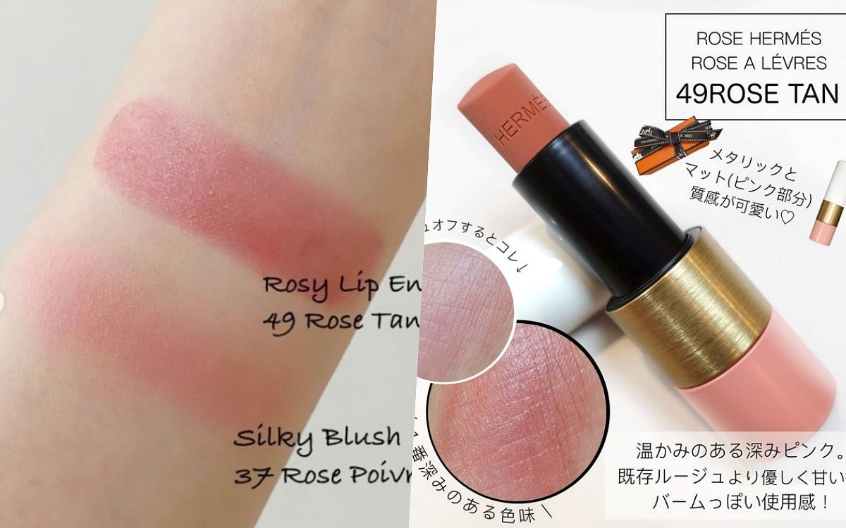 49 ROSE TAN質地如奶油溫潤細膩、暖寶寶粉紅色更能在塗抹瞬間服貼雙唇,唇膏一如既往地精緻的Hermès 字樣雕刻讓唇彩呈現藝術品一般的高雅質感。