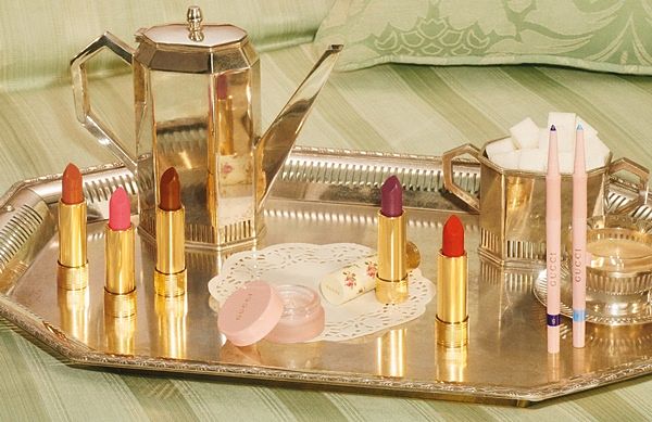一個多世紀前,第一支金屬材質的唇膏管誕生了,小小的唇膏管是一個被華麗外表和顏色包裹起來的機械裝置。為回顧這經典理念,創意總監 Alessandro Michele 設計的 Gucci 唇膏成為了讓人愛不釋手的古董玩物。Gucci 薄紗唇膏以金色底座配上象牙白色的管身並飾有女性嫵媚韻味的粉紅色玫瑰印花,讓人不禁想起了老電影中汽車旅館房間內的牆紙、5 0 年代洛杉磯的美容院, 或是古玩市場上找到的一支唇膏。