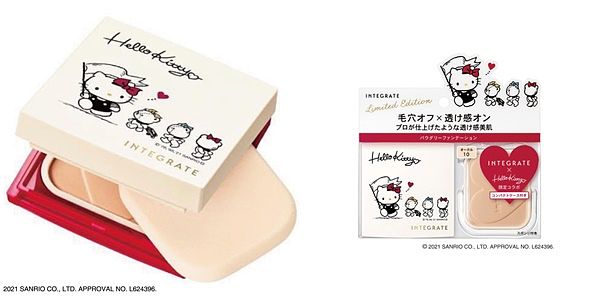 日本開架粉底銷售NO.1*的 INTEGRATE櫻特芮「柔焦輕透美肌粉餅n」,擁有令人驚豔的專櫃級細緻質地,薄透服貼還能自然遮瑕,輕鬆實現快速完妝。本次與「Hello Kitty」聯名彩妝,將推出附有Hello Kitty聯名粉盒的限定組合!