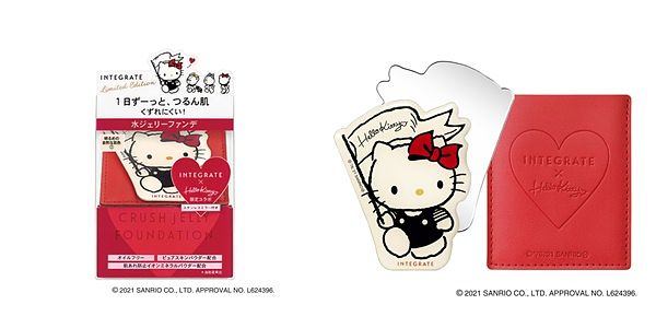 日本口碑No.1 * INTEGRATE櫻特芮「透潤柔光粉底凍」,保濕涼感的果凍質地,一拍服貼無瑕,持續展現如剛上妝般的肌膚質感。本次與「Hello Kitty」聯名彩妝,將推出贈送附專屬收納套的訂製隨身鏡限定組合!