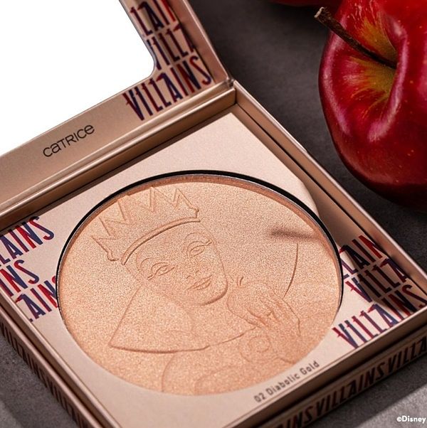 推出印製出壞皇后&烏蘇拉樣容打亮餅,採用大面積玫瑰金及香檳金兩種色調,沾取少量輕刷在蘋果肌上,具有光澤不掉粉的粉質,輕盈撫平臉上底妝,不容易有刷痕,延展性好,達到亮眼又超服貼的妝容,打在額頭、鼻樑、臉頰上疊擦可激出自然神仙感,怎能不購入呢!