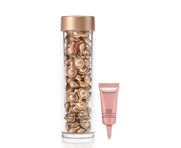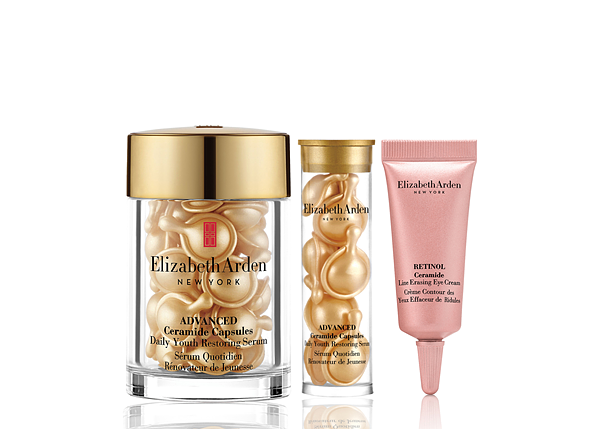 伊麗莎白雅頓在30年前便開啟分子釘膠囊的革命,單劑量的精華為個人量身定制,使肌膚保養更加精準。含有A醇的玫瑰金抗痕膠囊屢獲殊榮,品牌因而推出一款多效眼霜超智慧「玫瑰金無痕眼霜」,平滑眼周肌膚、同時明亮眼周,讓雙眸看起來更明亮動人。這款新上市眼霜特別運用「超智慧A醇科技」並添加保濕鎖水的分子釘,與一般A醇產品相比,滲透力提升5倍;透過緩釋科技,8小時不間斷釋放A醇,讓肌膚完整吸收並作用,宛若為您的雙眼量身打造一般!除了用玫瑰金無痕眼霜加強保養眼周肌膚,打造智慧少女眼;還可搭配有肌膚橡皮擦之稱的「玫瑰金抗痕膠囊」呵護臉部肌膚,玫瑰金膠囊含有維他命A醇與分子釘,透過分子釘的保濕功效,重新找回年輕Q彈的少女肌。週年慶期間選購【玫瑰金少女眼霜組】等於買少女眼霜,就送兩管7顆裝玫瑰金膠囊,直接讓您體驗地表最強少女系撫紋雙星,另外還加送經典不敗的艾地苯防禦乳,等於65折買到價值$3,724元的保養組合!