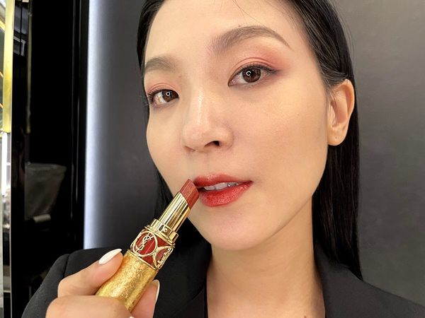 玫瑰粉裸中透出隱隱流瀉閃耀金色光芒,完美地呈現出專屬於YSL女人性感又危險的美唇特質。