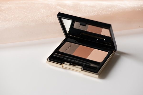 帶有黃感的深邃棕色、搭配帶有微微紅感的淺橘色、以及清透般光感的淺米色。色彩不會過於強烈,不需技巧即能簡單打造出柔和輕盈的眉型。