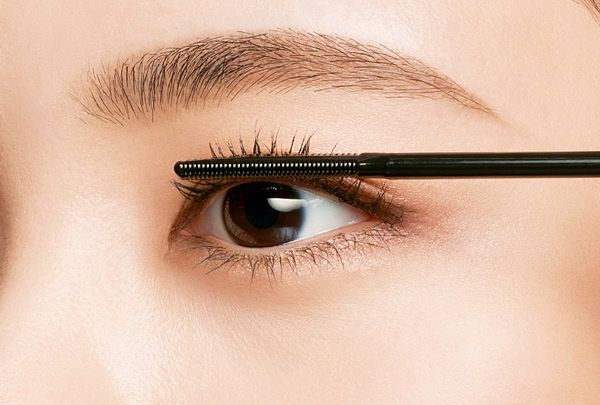 1. 請以梳刷將睫毛梳開般,將上下睫毛從根部刷至睫毛前端,並重複塗抹。上睫毛從上方開始梳開更能充分塗抹。