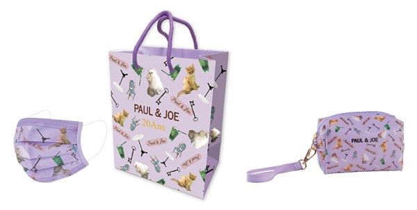 4月1日起任消費即可獲贈 PAUL & JOE 20週年限量圖騰紙袋 + 20週年限量圖騰口罩2入,6月1日~7月31日消費NT.2,800以上即可獲贈 PAUL & JOE 20週年限量圖騰防水化妝包,單筆消費限贈一份,限量贈品數量有限,贈完為止。