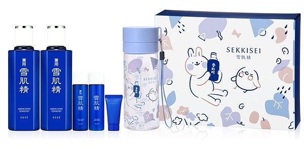 淡雅文青風格的禮盒設計好感度提升 200%,約 75 折的禮盒內除了雪肌精 360ML 正貨兩瓶,更加贈雪肌精系列小 sample 並有聯名仲夏冷水瓶。不僅肌膚喝飽水也要隨時幫身體補充水分,超萌的冷水瓶絕對令你愛不釋手!
