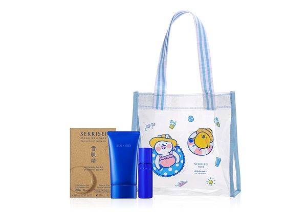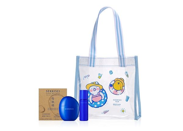2.主力兩款防曬限量組不僅多贈雪肌精漾活化粧水 35ML,更有高絲 雪肌精×懶散兔&啾先生 透明小提袋 乙個 ( 數量有限,要搶要快 )
