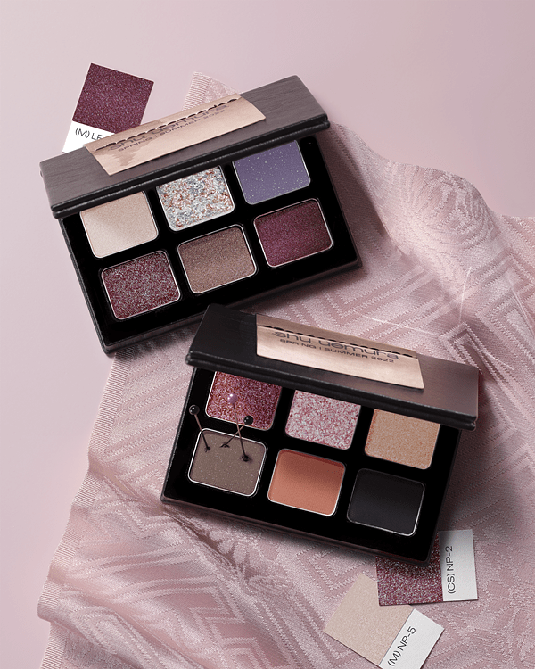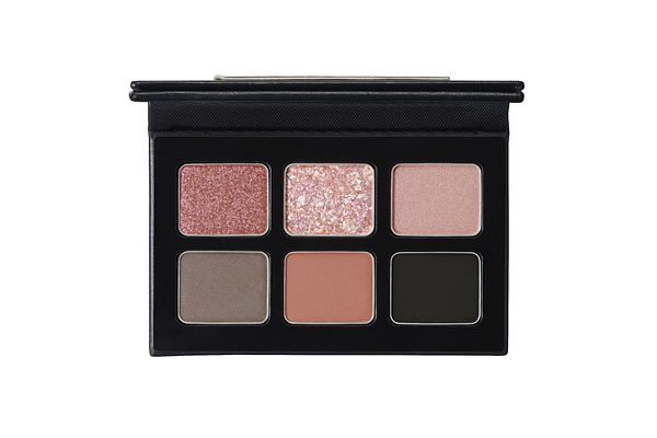 以玫瑰裸粉為主色調的眼影盤加入個性的黑色,不論是耍酷耍甜都能展現出時尚前衛個人風格