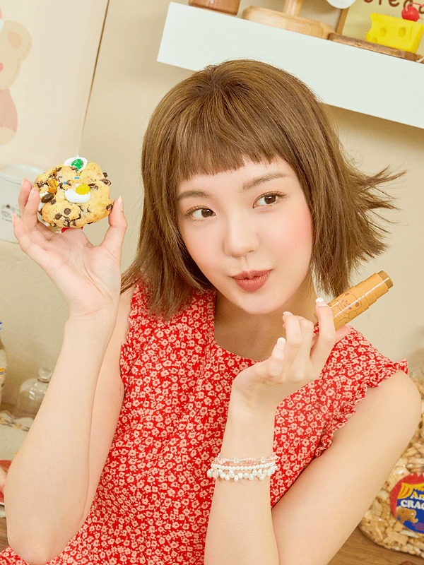 「我愛甜點極霧烤茶唇膏」將作者最愛的櫻桃紅元素結合Bebe熊大頭圖樣,配上氛圍感滿滿的溫暖粉杏色外殼,一抹絲滑又顯色,成分添加天然植萃覆盆子油,塗起來有如奶油般輕盈無感,極致滑順不顯紋、潤澤顯色度高,顛覆一般人對霧面唇彩的想像,用指腹慢慢的輕拍暈開,薄擦軟萌感爆值,厚塗飽和有氣勢,一支唇膏就能擁有兩種唇妝。