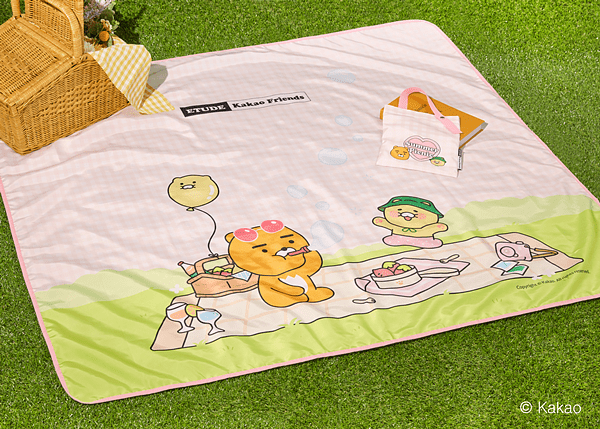 Kakao Friends中人氣直逼主人的萌寵CHOONSIK,與當家明星RYAN提出了適合夏日午後耍廢的idea:野餐🧺