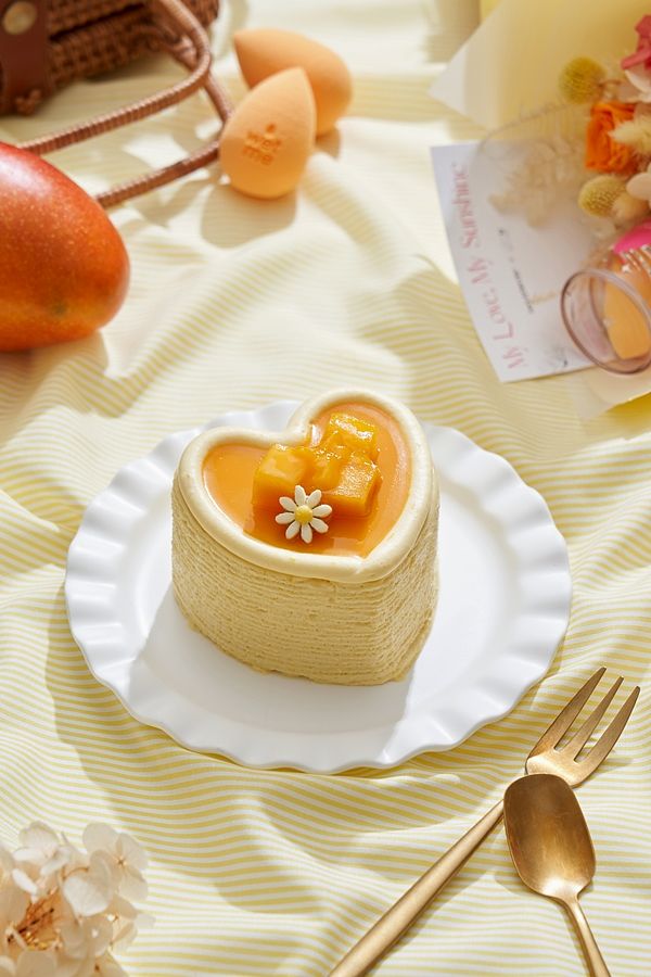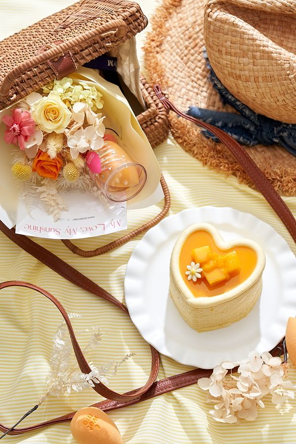 鮮嫩欲滴、果香四溢的愛心芒果千層,餅皮間均稱地抹入酸香甜馥的芒果卡士達,入口後,盛夏獨有的濃情蜜意躍然舌尖!風靡全球最貼膚的底妝神器變色蛋—艷陽,以獨家溫感天然染色技術「遇冷變橘,遇熱轉黃」、獨家超柔軟材質及專利水激活技術,讓戀人輕鬆打造如同夏日陽光般耀眼可人的完美無瑕服貼妝容,妝點戀人的迷人姿態;花束小卡特別寫上「My Love, My Sunshine」,為您向愛人傾訴如燦爛豔陽般永恆存在的愛意,透過最頂級的味蕾享受與最舒適的上妝體驗,佐以浪漫如歌的鮮黃花禮,為戀情甜蜜加溫!