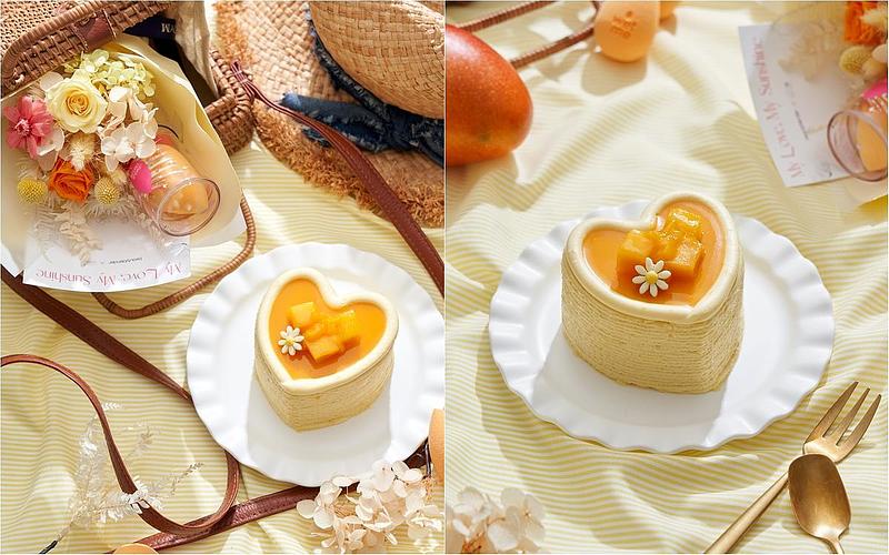 愛心芒果千層蛋糕搭配原創美妝蛋花束~美呆!