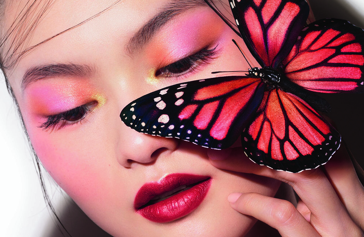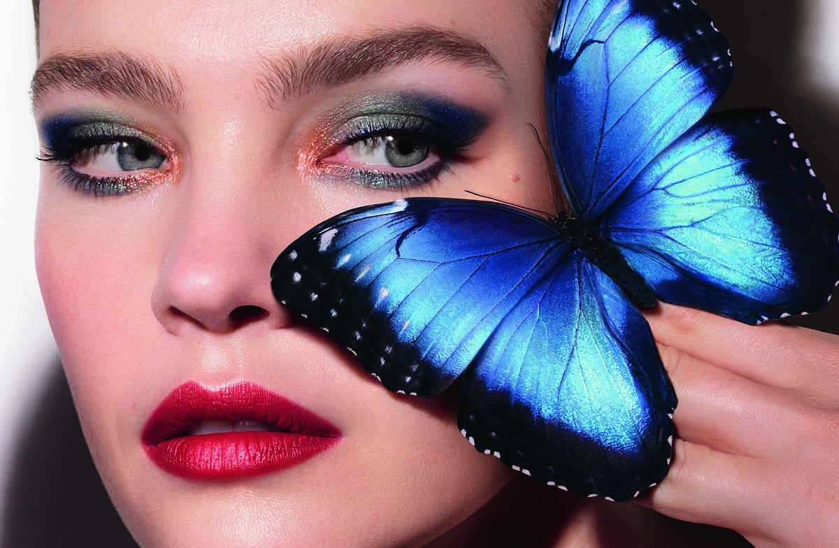 三位超模畫上 Ombres G 高訂深邃四色眼影 盤明星色號,在時尚攝影師 Sø lve Sundsbø 掌鏡下盡顯美妙姿態。這次全新主視覺以蝴蝶寓言為主題,展現蝴蝶絢麗多彩、美麗如畫的翅膀,營造歡快明亮的氛圍,而嬌蘭彩妝總監 Violette 更特別為此廣告創作三種妝容。嬌蘭的繆思女神 Natalia Vodianova 塗上 N.360 Mystic Peacock 色號,一雙藍色眼眸更加眉目傳情。細緻的 N.555 Metal Butterfly 色調則燃亮了超模賀聰的雙眸,而 N.530Majestic Rose則為 Maty Fall 的黑色眼睛更添深邃感。
