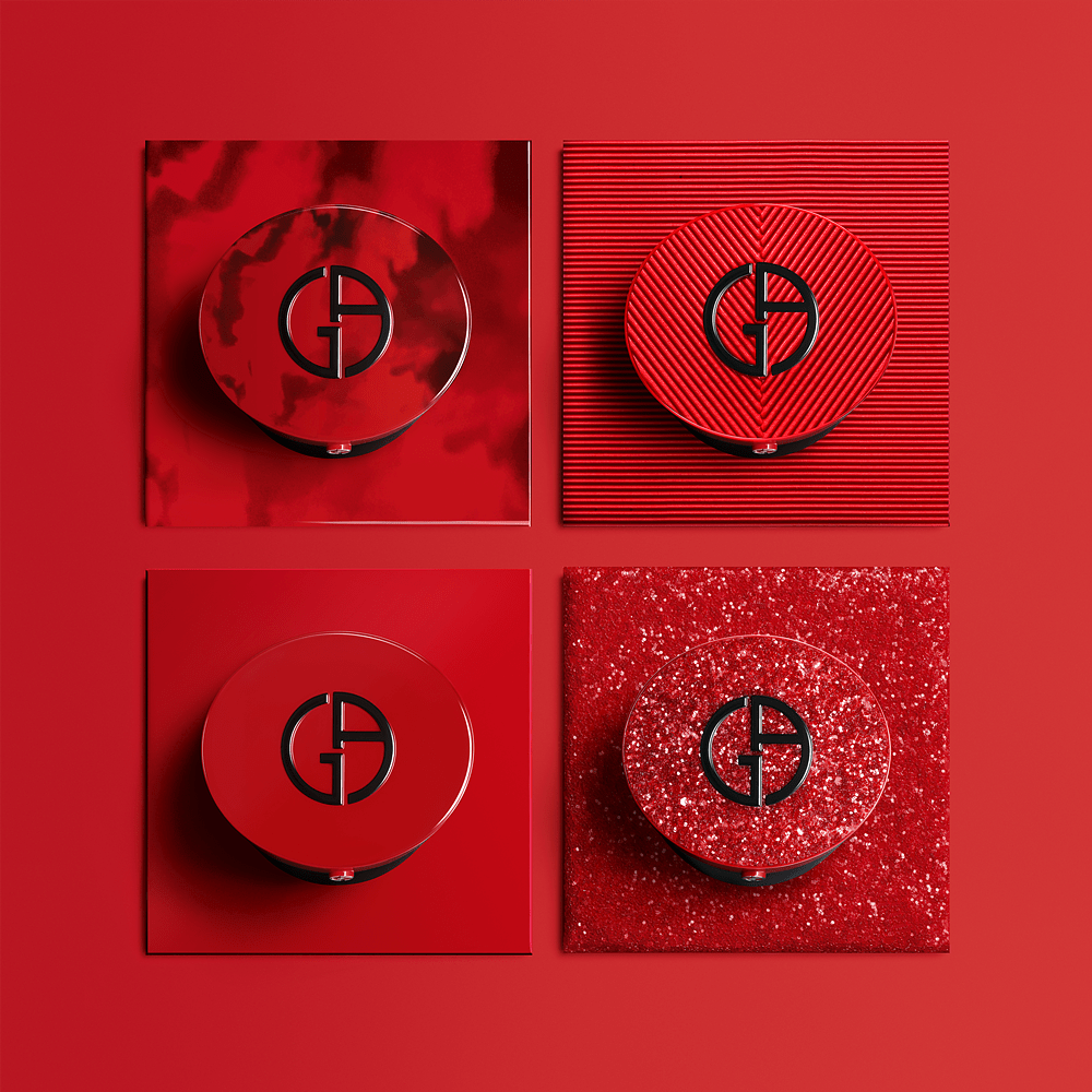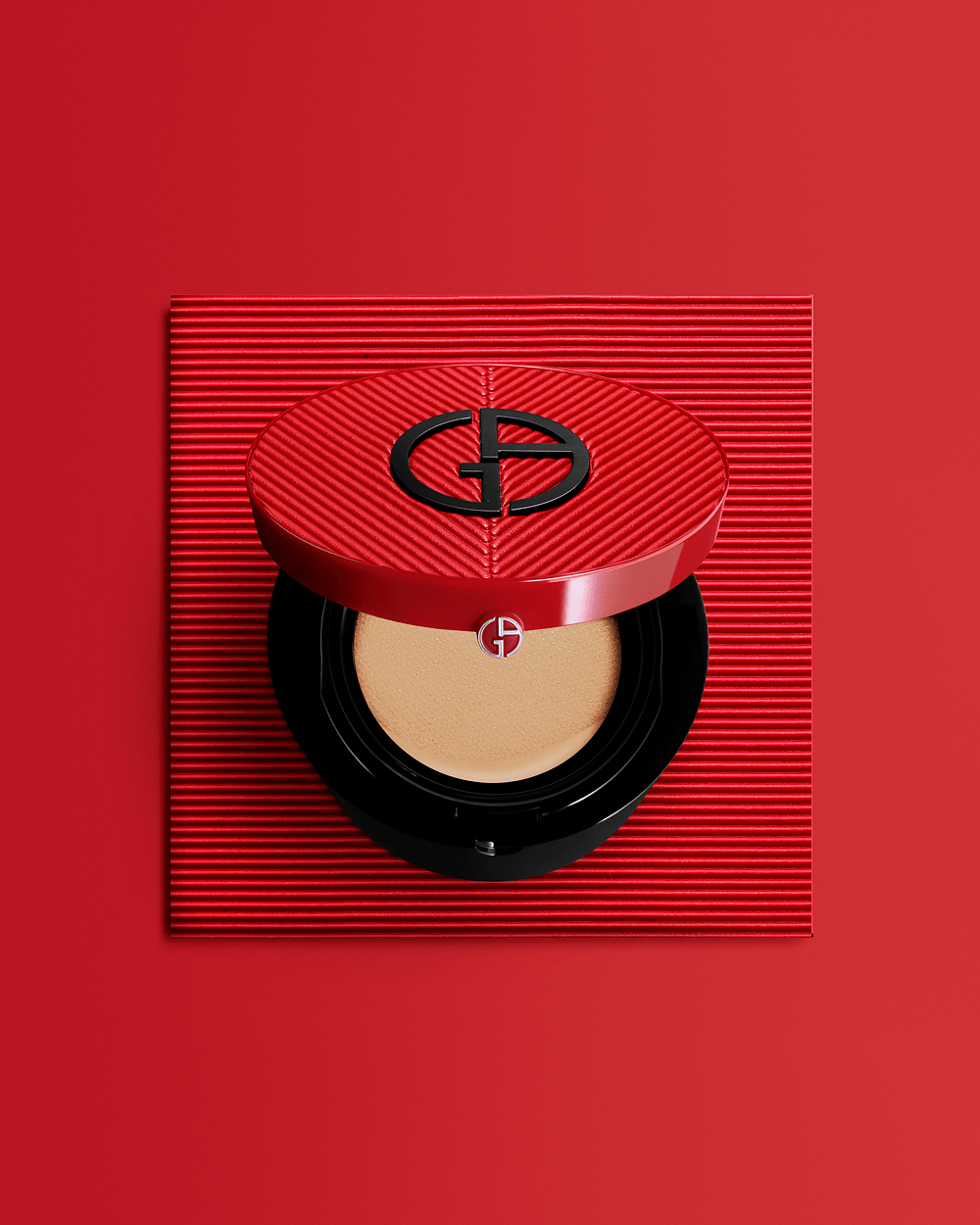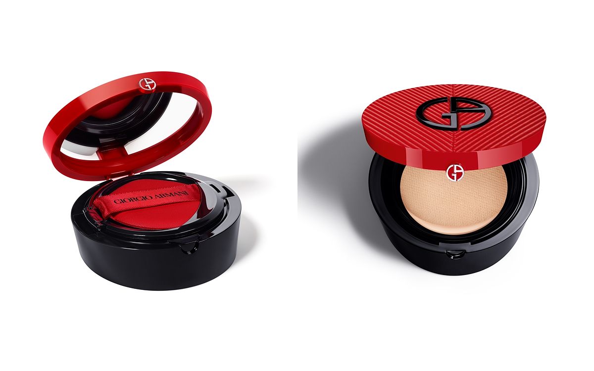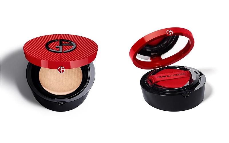 靈感來自精緻高級訂製服設計理念的「完美絲絨持久氣墊粉餅」,一共四款粉盒,款款經典亞曼尼紅色訂製外衣:漆皮紅、大理石紅、晶鑽紅,以及全新斜紋紅,搭配亞曼尼漆皮黑 LOGO,不只是彩妝品,更是女人的隨行精品,被網友譽為底妝界的夢幻逸品,收下即自帶女王高貴氣息。