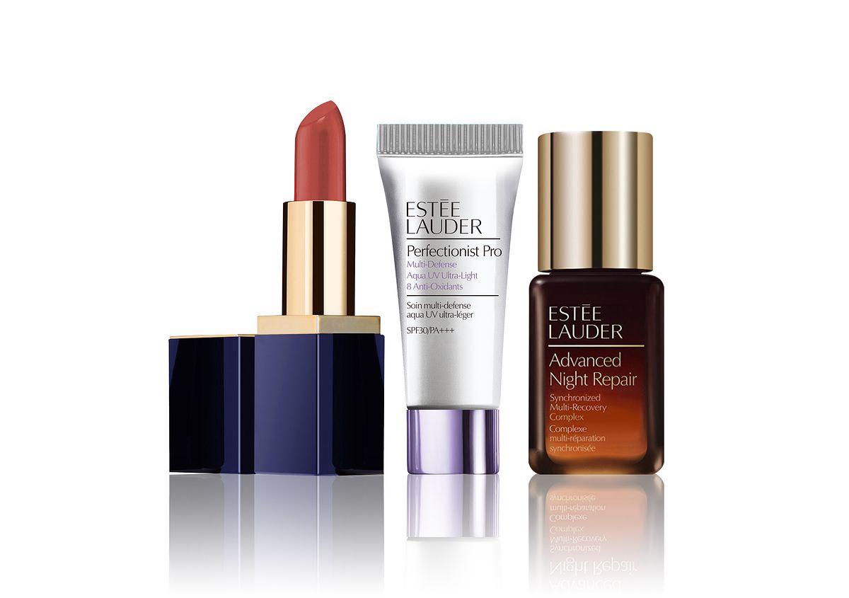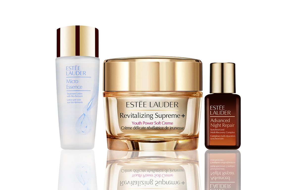 而貼心的雅詩蘭黛也推出「美肌雙冠組」及「童顏再現組」多種金三角搭配組合,滿足各式保養和囤貨需求的鐵粉!