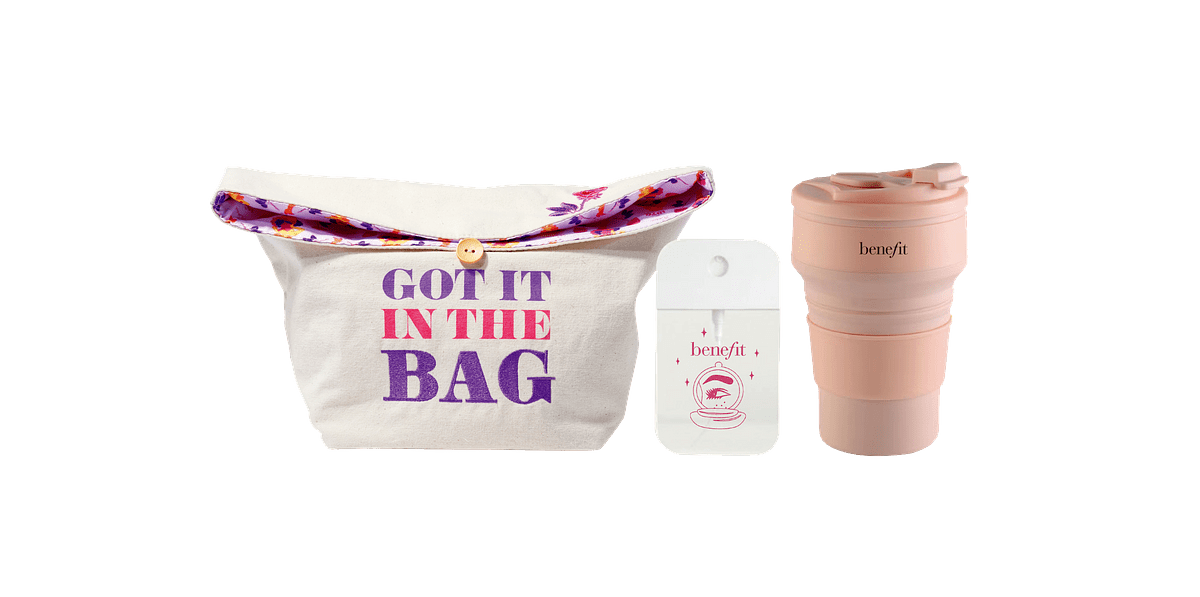 benefit化妝包+隨身噴霧瓶+環保摺疊水杯+現抵NT.500