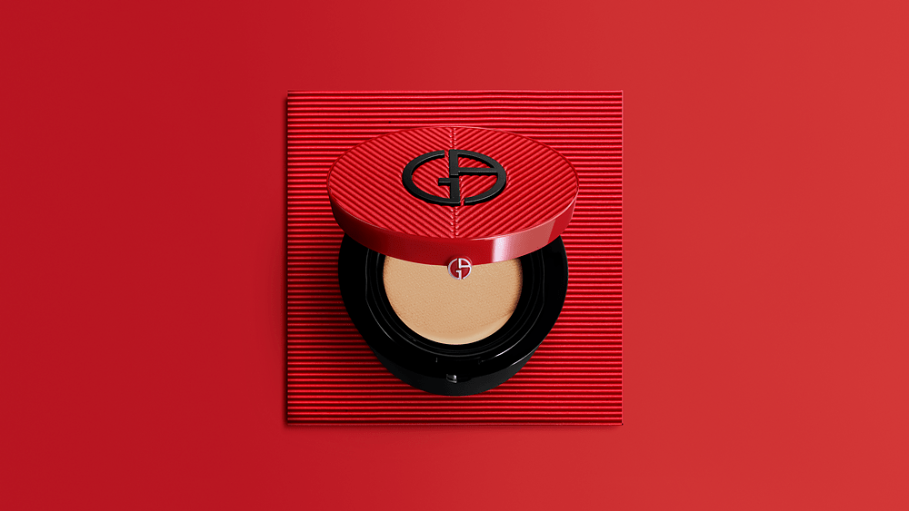 亞曼尼更將高級訂製服概念延伸至粉盒外觀,接連獻上漆皮紅、大理石紅、晶鑽紅等質感設計,已成為每個人必須收藏的底妝精品配件。今年推出首款皮革粉盒【完美絲絨持久氣墊粉餅-斜紋紅】,發想來自亞曼尼精品包款,外出補妝一秒展露女王氣勢。不只外觀吸睛,成份更高規格,打造「複合保濕精萃」維持 18 小時的水潤續航力;運用「高效控油科技」將粉體極細化,貼膚同時柔焦毛孔、有效吸油;獨家「持色無瑕精華」將高濃度的遮瑕色彩粒子轉化為超細珠光粒子,賦予肌膚絲絨精緻光澤;首度公開的「持色無瑕精華」技術,拍上粉餅後使肌膚產生涼感,打造出無瑕且不悶厚的半霧光澤底妝,讓你擁有如同與生俱來的精緻底妝。