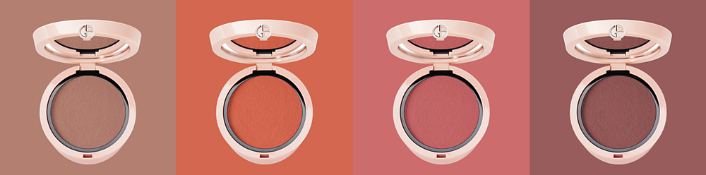 今年 9 月限量回歸上市的#奶霜腮紅【亞曼尼訂製裸粉腮紅/修容霜】,除了去年上市即完售的 51 嫩粉裸橘、61 微醺柔紫外,再推出全新八款新色,包含三大色系:暖橘系、裸粉系及柔紫系,是一款擁有清爽質地且延展性高的奶霜狀腮紅。業界首創霜轉粉科技,一抹幻化粉霧質地,不容易卡粉,給你宛若天生的好氣色;內含 40% 美容油,呈現獨特彈性質地,延展度極佳,能輕鬆渲染出自然的優雅妝感,其親膚粉包油技術讓持妝度與顯色度再升級,比粉狀腮紅更持久!除了可用於頰彩之外,更可以當作修容、眼影使用,用手指輕點沾取,一抹暈染立即顯色,一盒即可達到多功能效果,整天完美不脫妝!
