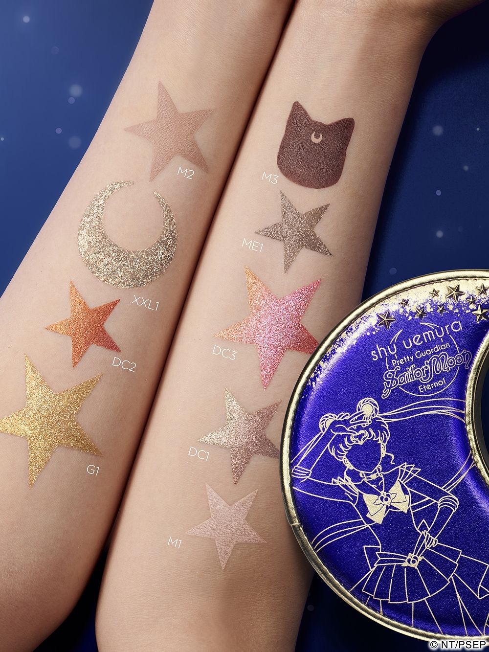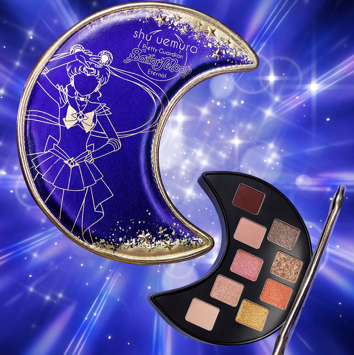 集結九款百搭零廢色如星光閃耀的眼影,搭配超夢幻弦月包裝,就像與月亮之間獨一無二的連結,畫筆一揮你就是超級水手月亮!霧面淺米、淺金,炫目香檳金、灰褐、深紅棕,此盤擁有三款獨家「魔幻稜光漸變質地」眼影,單用疊擦皆可,多種質地輕鬆上色,在不同角度之下變換光影與細緻色澤,初學者也能輕鬆制霸銀河系!想要變身超級水手月亮,絕對不能錯過這個限量收藏品。
