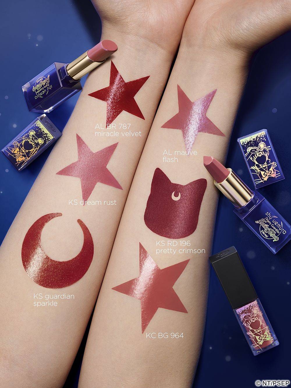絲滑如奶油慕斯、色彩飽和、燦爛如權杖,一眼就讓人淪陷。月光下的水亮唇彩結合超級水手月亮的金色身影,奪目神聖讓人想馬上收藏!