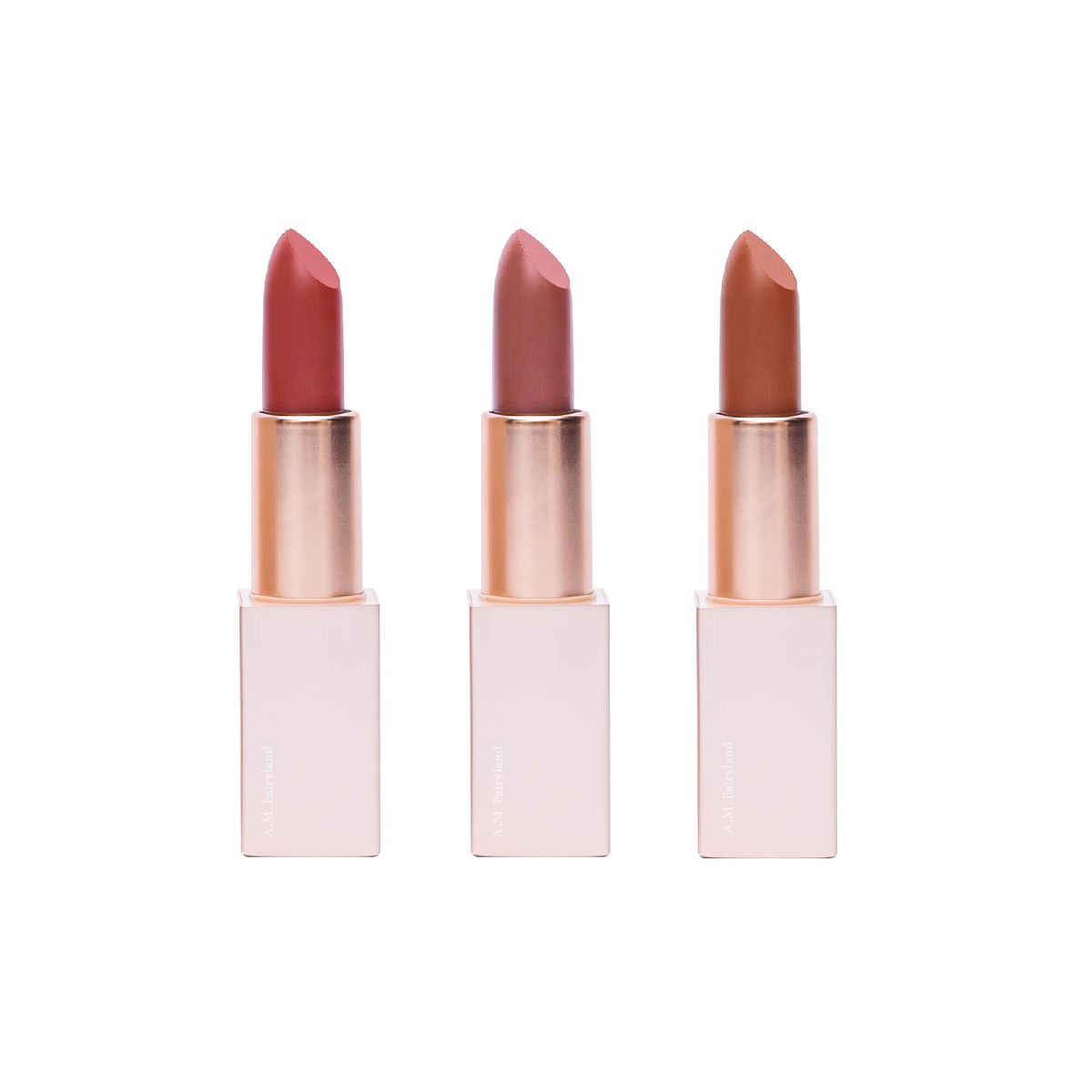 一直給人溫柔女人感的A.M. Fairyland,研發推出的產品,除質地及妝感美外,外觀的實用和美感也是研發重點之一!小金塊唇膏「微光晶飾戀唇膏」本次推出新的三款秋冬色,霧感中帶有些微光澤,櫻花柔粉色宛如初戀般甜蜜的「05 粉茉之舞」、甜美中帶點高冷的玫瑰甜茶色的「06 蒔花絮語」、像被太陽親吻過的珊瑚暖橘色的「07 日和澄樂」,每一色都能在眾人中脫穎而出,特選調色專為台灣膚色而生,替妝容畫龍點睛,高飽和妝效超上鏡,精美的設計,利用磁吸式玫瑰金外蓋,配上高質感刻字設計,握於手中宛如高級訂製品,是這個秋冬必須入手的唇膏!