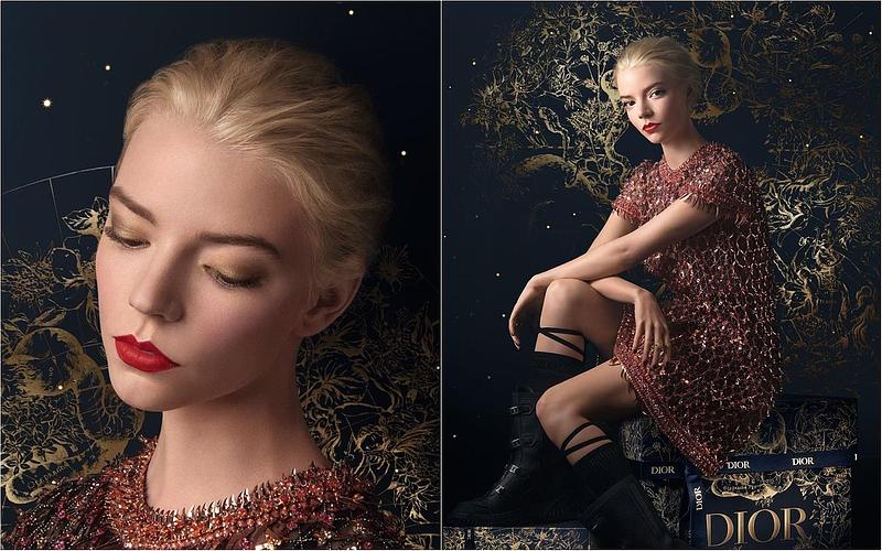 安雅泰勒喬伊是《2022 迪奧聖誕彩妝-閃耀星辰限量版》的繆思,在形象廣告中,她推開柯勒諾瓦莊園的大門,幻化成迪奧先生莊園的主人,開啟夢幻之夜,在璀璨星空與金色光影交錯之間,賓客衣著華麗、彼此交換聖誕禮物,這時天空落下羽毛般輕柔的雪花,超現實氛圍令人沈醉!
