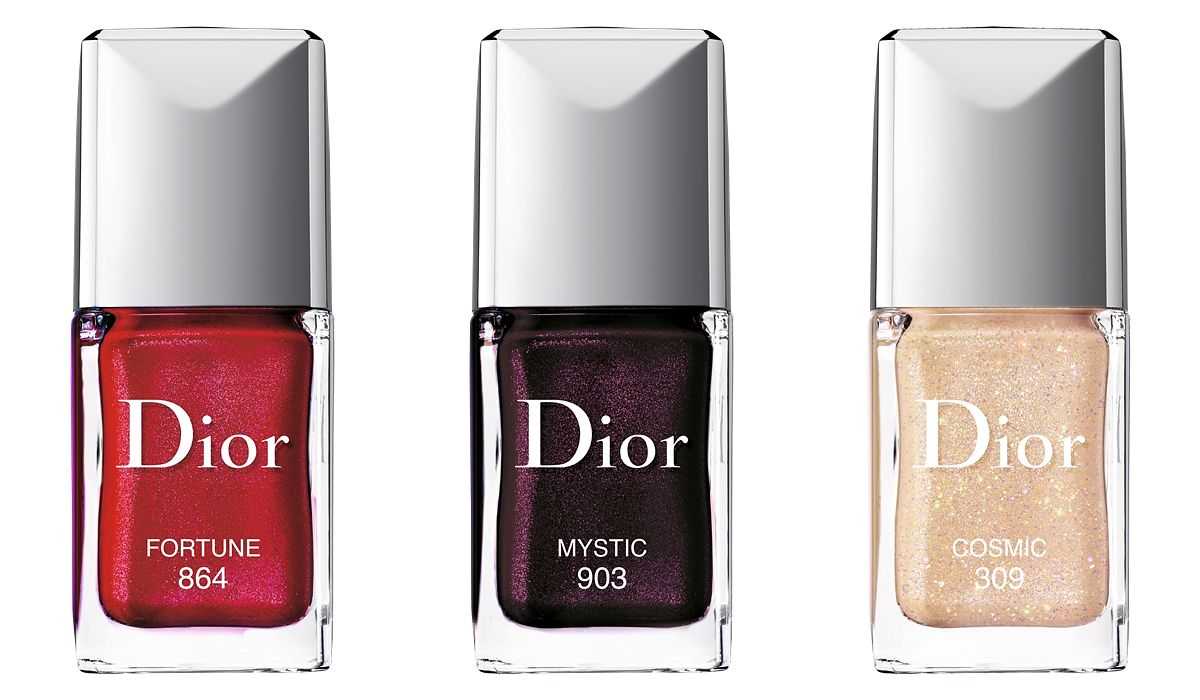 《迪奧指甲油》搭配聖誕彩妝推出 2 款限量色選,「#903 奇幻冬夜」紫褐色閃爍虹彩,神秘迷人有如冬夜星空;「#864 聖誕緋紅」經典紅色注入紫色光澤更加耀眼,為指尖帶來雀躍的聖誕氛圍。蘊含金色璀璨亮片的《迪奧亮甲油》「#309 閃耀星辰」,彷彿金色銀河灑落指尖,大小珍珠母貝粒子交相輝映,以繽紛閃耀光澤妝點指尖,不論是單擦或疊擦,都能為指尖增添夢幻綺想!