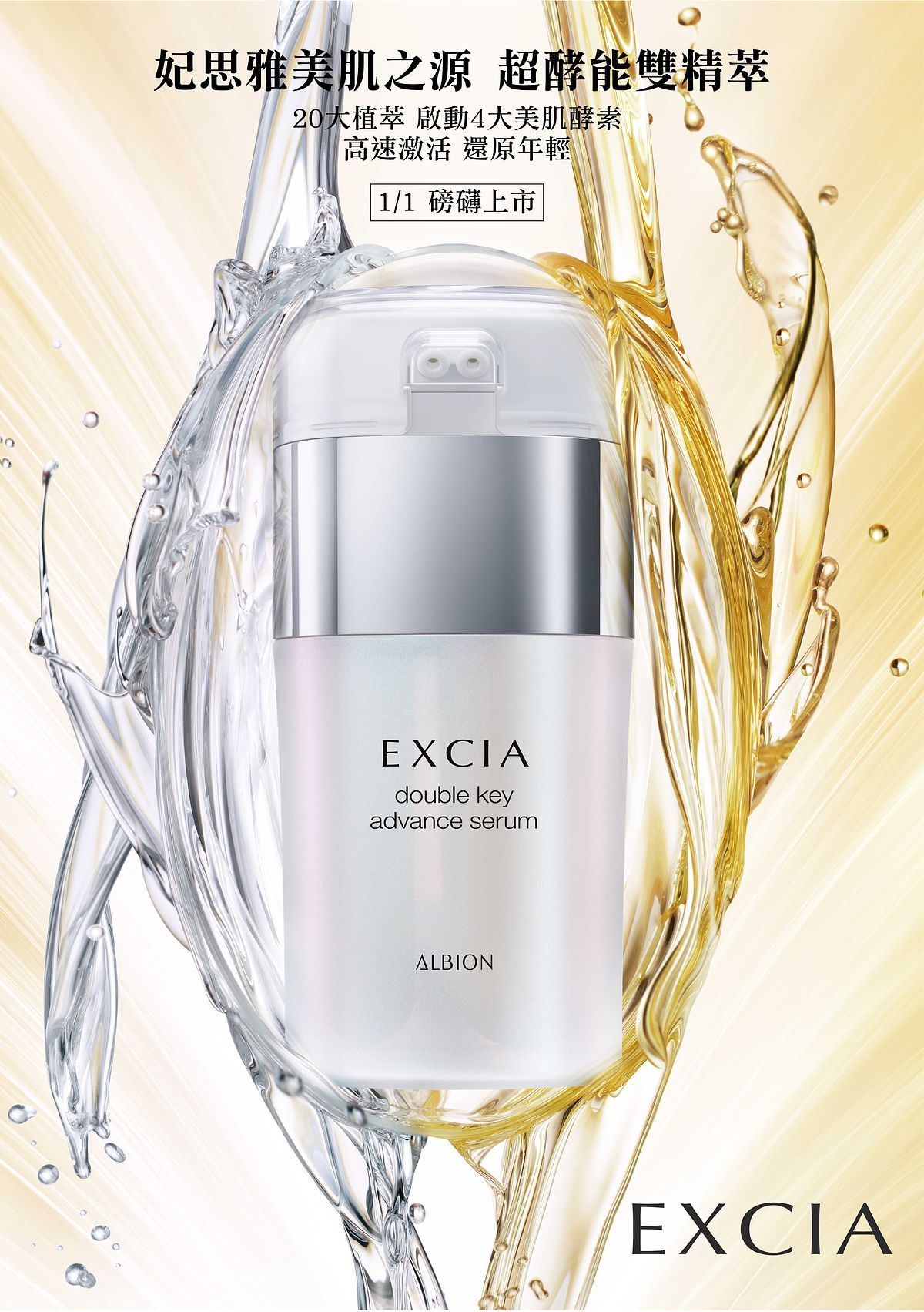 ALBION奧碧虹自回歸直營以來,致力傳遞更豐富完整、原汁原味的品牌精神,持續用日式精緻保養、乳液先行=先乳後水的保養美學概念耕耘台灣市場,尤其是中高階產品線: EXCIA妃思雅美肌之源系列,從再生醫學趨勢著眼,於肌膚根源持續修護,功效卓越成為品牌銷售NO.2系列,其中除了乳液先行哲學所帶領的妃思雅美肌之源滲透乳大受忠實愛用者喜愛外,此系列還有一瓶雙管精萃,能為肌膚直接注入活性水感和油質濃縮精華,默默賣翻成為品牌銷售NO.1的抗老精華液。