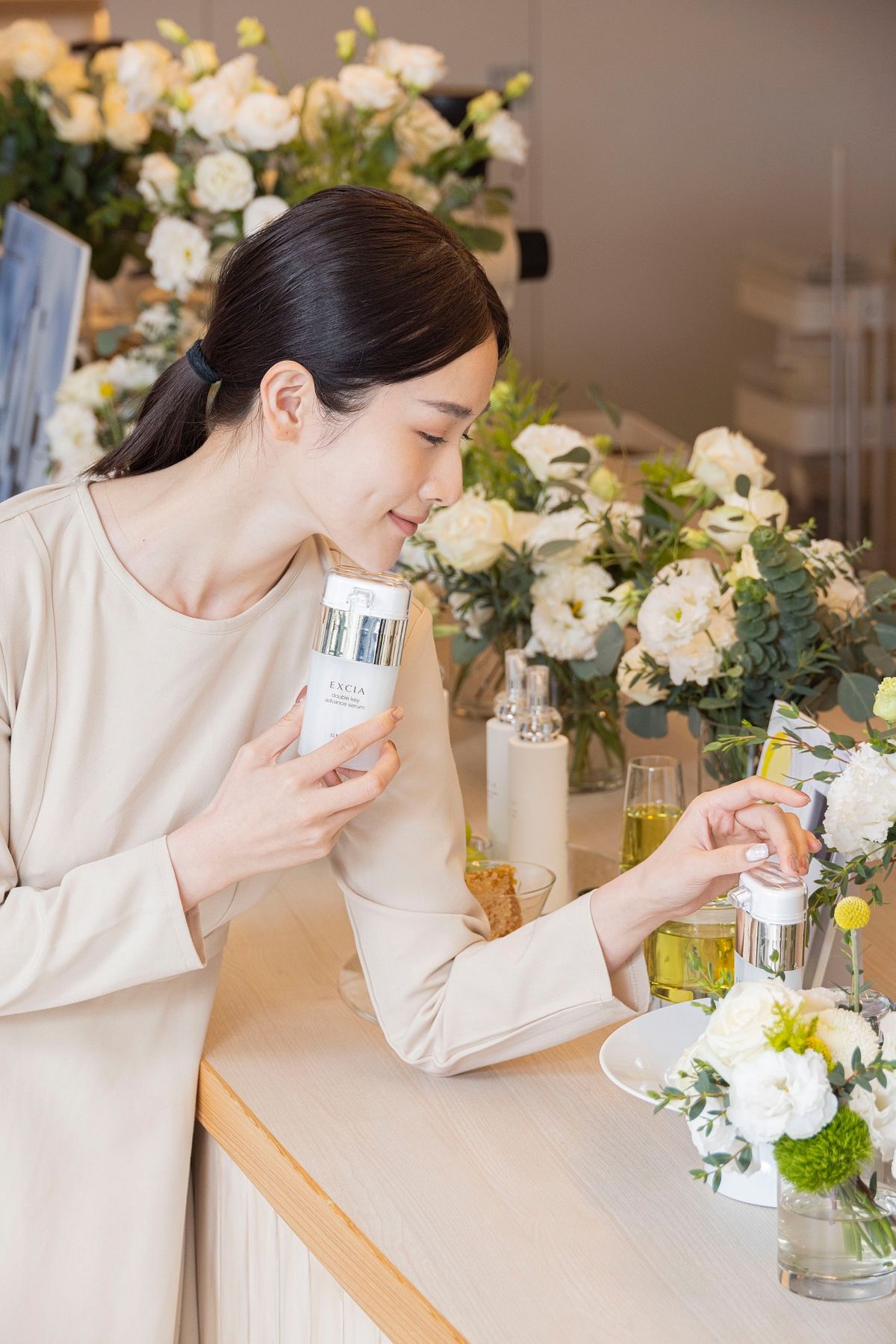 日商奧碧虹台灣總經理Daphne陳靜怡表示:「雖然油保養蔚為風潮,但其實美麗的肌膚必須靠好的『油』和充足的水『養』出來! ALBION妃思雅美肌之源系列的雙管精萃大受愛用者推崇,原因不外乎越來越多消費者已意識到肌膚需要同時補充好的油質與水分,充沛的水分甚至能讓油質更清爽好吸收,全面提升肌膚的保水屏障。全新升級推出的妃思雅美肌之源超酵能雙精萃,質地為蘊含豐沛植物活性精華的油水雙萃,特殊雙管按壓系統是經過科學實驗的『黃金比例』,雙管齊下能讓肌膚立刻獲得所需的油水平衡比例。輕輕在手中畫圈混合均勻,就會變成凝露質地,在臉部肌膚推勻並按壓吸收,便能立即彈嫩光亮, 使用後再上妝會發現底妝更亮更服貼,晚上使用,隔天起床肌膚豐盈飽滿有光澤,就像是敷了一整晚的面膜一樣」。