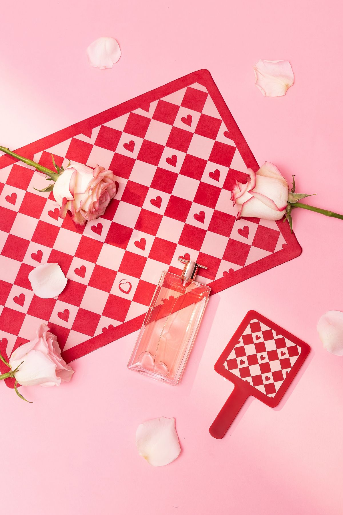 至全台蘭蔻專櫃或官網消費且含《IDÔLE唯我 香水》50ML以上,即贈限量消費禮「愛戀棋盤 格化妝墊」、「愛戀棋盤格手拿鏡」!手拿鏡 超可愛嫩粉色、深紅色相間的棋盤格設計,搭 配化妝墊極具質感的麂皮材質,為日常生活點 綴浪漫儀式感!