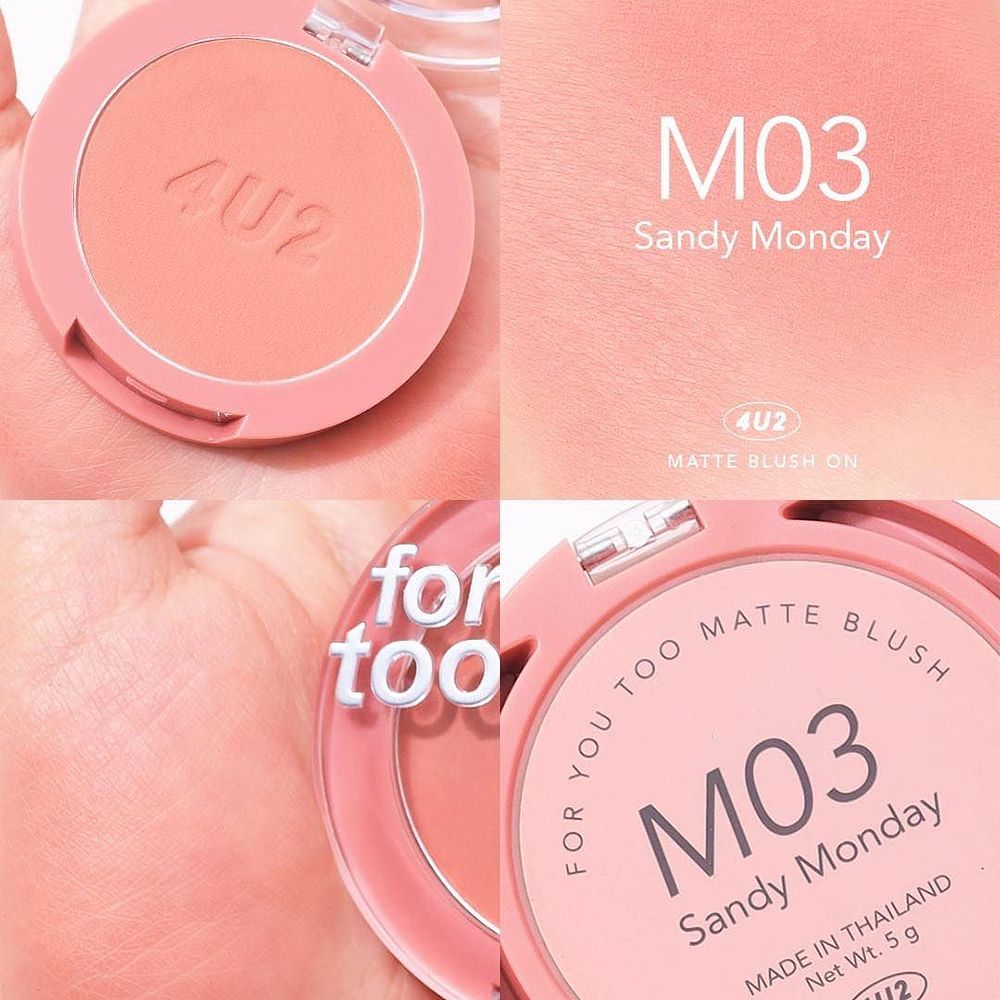 這款相較M01更加顯色,裸色調中帶點春天的粉色,更加提亮,素顏也適合刷上的天然系腮紅,給人一種天真無害的感覺!