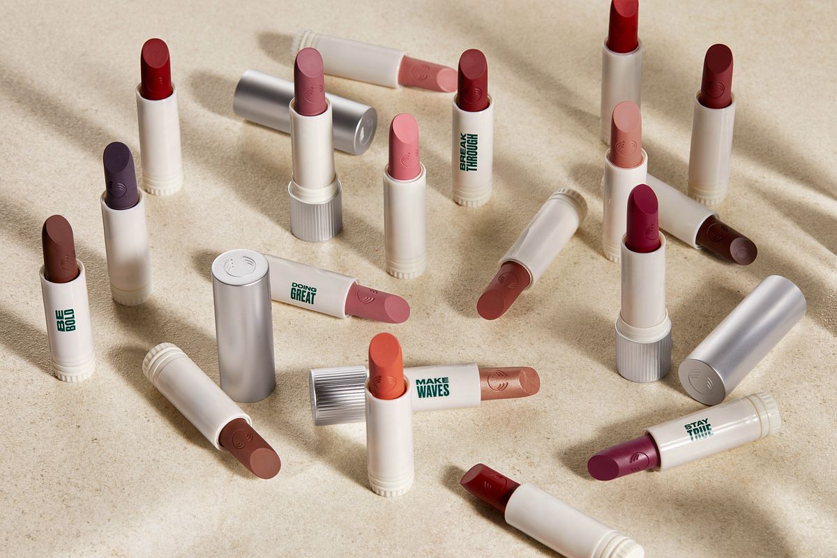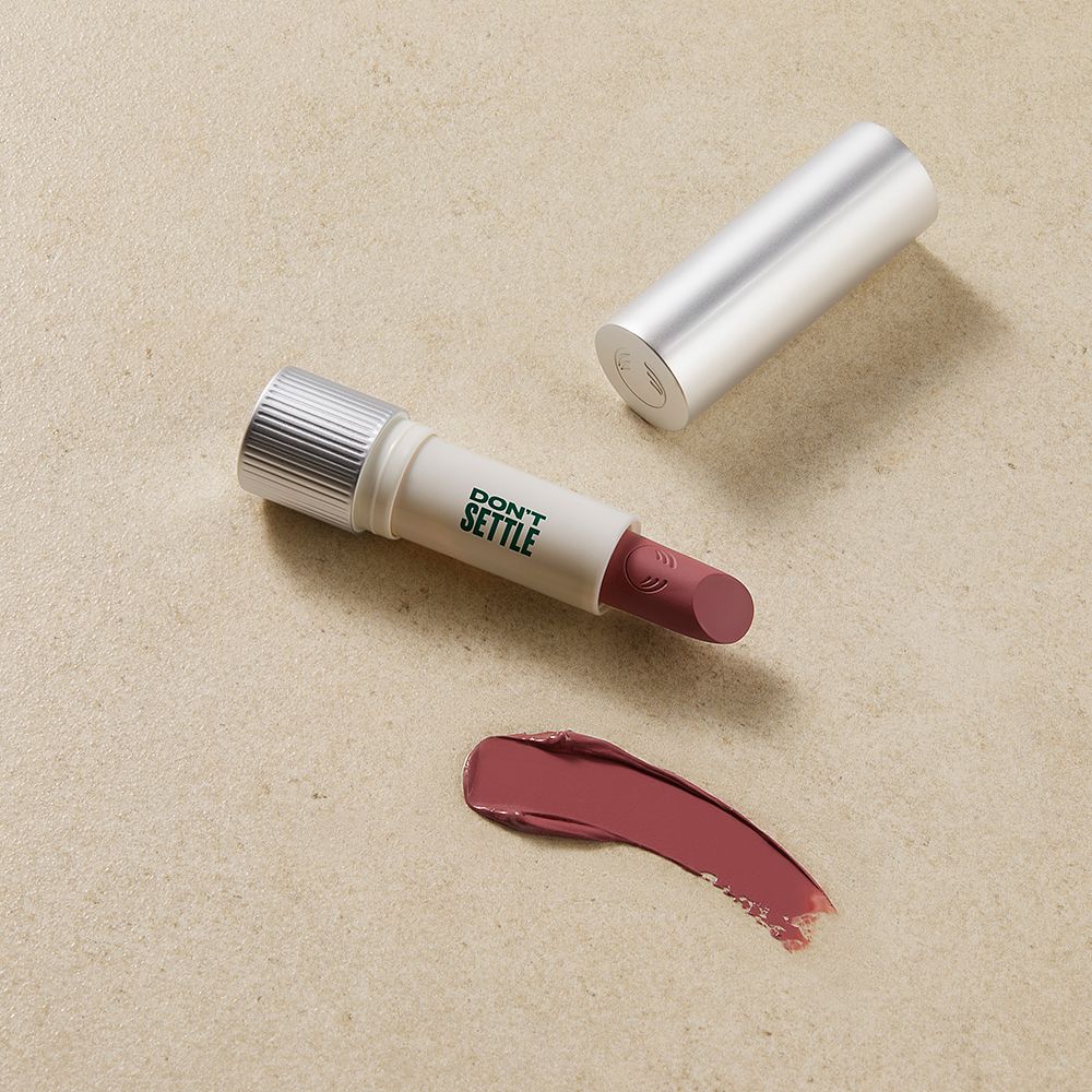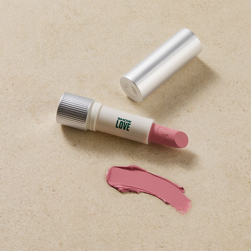 「心聲絲絨唇膏」,維持 THE BODY SHOP 美體小舖 100%純素、成分天然以及對地球友善的堅持,推出替換式唇膏的設計,唇膏蕊芯和鋁製管身可以分開購買,鋁製管身是採用 100% PCR(postconsumer recycled resin)再收材料製成,唇膏用完將可回收鋁製管身留下,不妨再買一個新色號蕊芯試試看,嘗鮮之餘,同時達到落實永續減塑,一舉兩得。