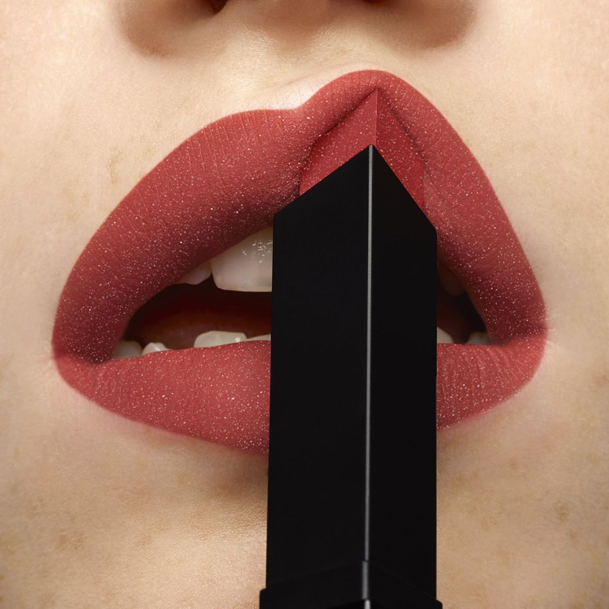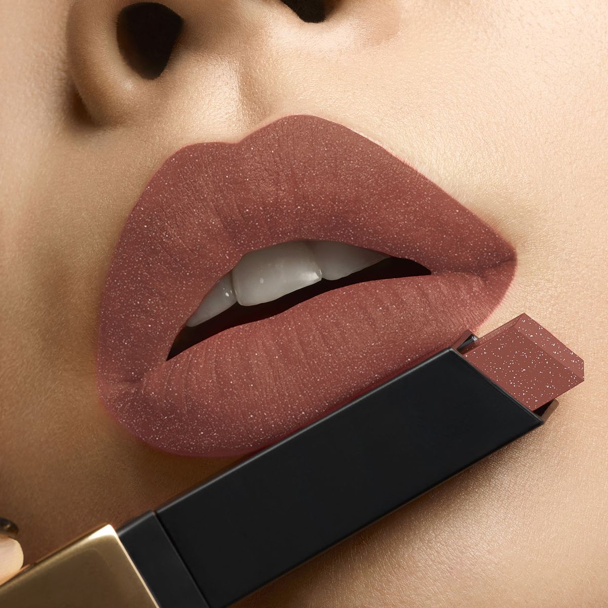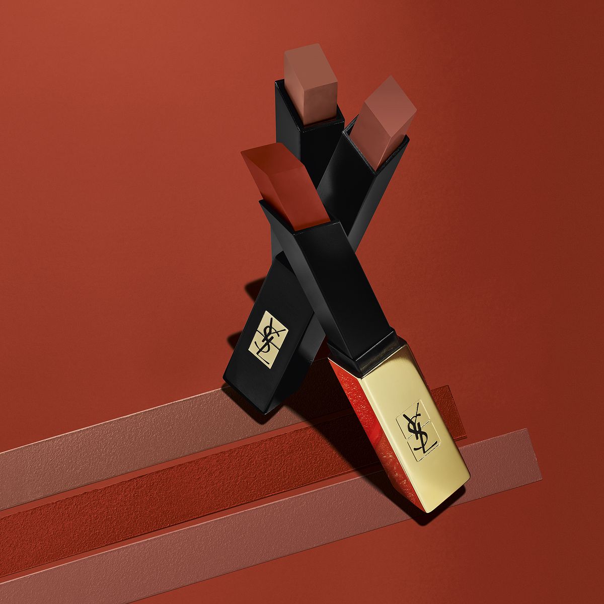 裸色不再只是溫柔純真,YSL的裸就要誘惑性感又炙熱!在裸色中增添深紅珍珠底色,使唇彩色澤更加深邃立體,宛如摩洛哥的神秘色彩,搭配絲絨霧感妝效,呈現更具質感的絲絨皮革粉霧裸色,突破裸色性感誘惑新境界!