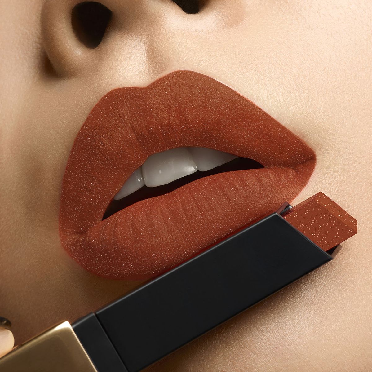 靈感源自馬拉喀什城,金黃日落灑落在浪漫赤陶紅土上,迷幻浪漫如畫般的絕美光耀,YSL獨家研發全新「3D雙色粒子」,讓雙唇散發悸動琥珀微光澤。磚紅粒子增加紅調,改善蠟黃暗沉膚色,肌膚更顯白皙勻亮。以細金粒子取代傳統金屬光,細緻均勻折射光線,使雙唇呈現微微光澤。隱約細膩的3D幻影光澤與神祕性感的深紅裸色交互作用,打造低調優雅的誘惑美唇。