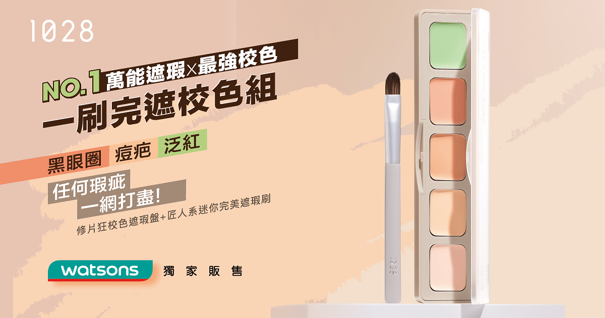 匠人系 MINI 專業彩妝刷中的遮瑕佼佼者《1028 匠人系完美遮瑕刷 MF15》和累積眾多好口碑的《1028 修片狂校色遮瑕盤》強強聯手,推出屈臣氏獨家組《1028 一刷完遮校色組》,超萬能的五色遮瑕盤囊括「兩色校色」與「三色遮瑕」功能,搭配能精準遮蓋完美服貼的遮瑕刷,精準隱藏瑕疵,讓你展現自信!