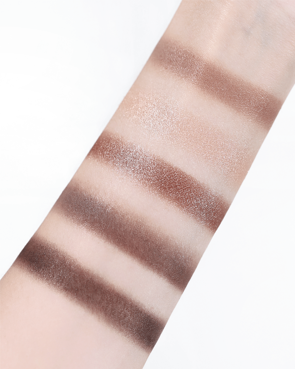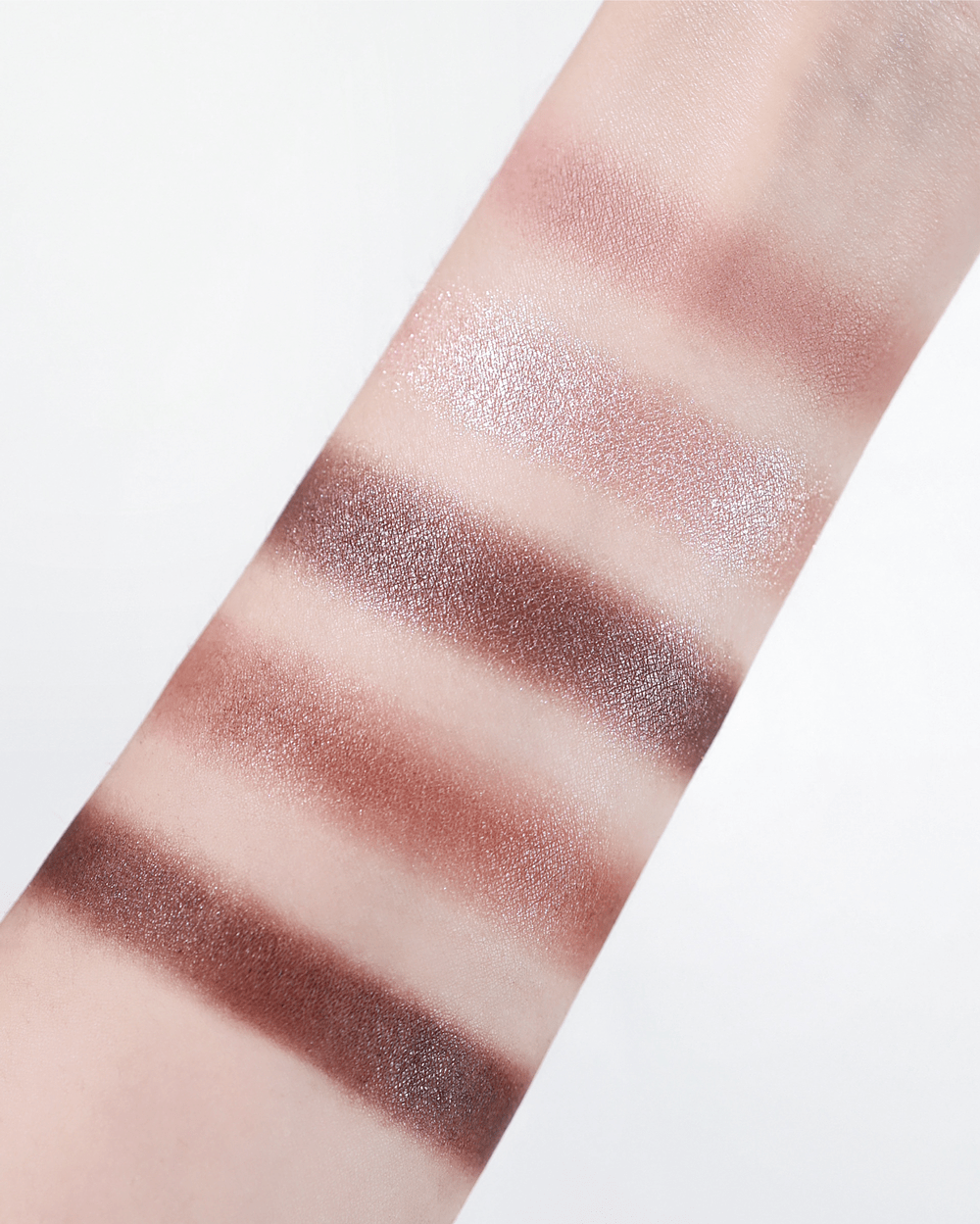 藝術家精選3款眼影盤,以5種不同膚色為靈感,透過百搭、霧面質地帶金屬光的配色,演譯原生輕裸到深遂眼妝,在展現配色淡濃的轉換時,還加入粉霧、光澤的層次感。細膩柔滑的質地,讓上妝取色更容易、不卡粉!