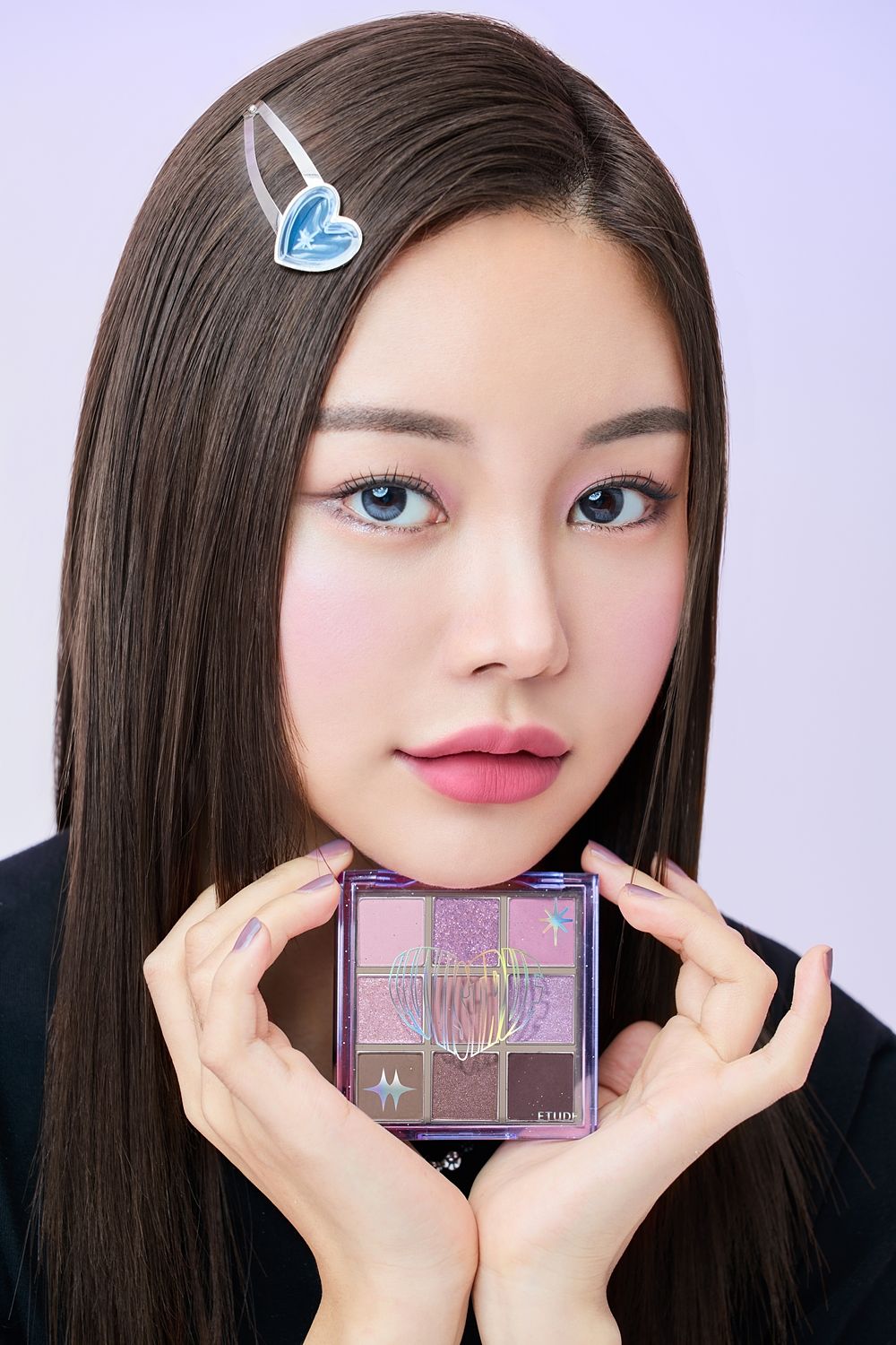 韓國少女們必買的彩妝品牌ETUDE06月獨家限量推出,與韓國潮流品牌LUVISTRUE聯名彩妝 #1紫禁之巔愛起來5個霧面色加上3個亮片色與1個閃爍大亮片色格,最淺色可以用作眼皮打底 與打造臥蠶陰影,深棕色系可以加深雙眼皮與眼尾輪廓,亮片色除了點綴眼中也可以凸顯臥蠶與眼頭,偏清冷的色調讓這盤除了日常消腫,更可以畫出甜酷妝感妝容 !
